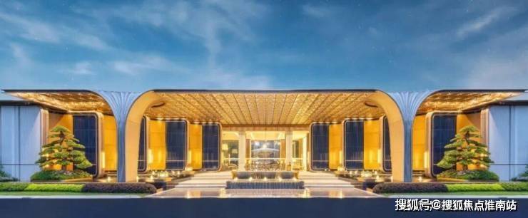 棠悦芳华轩大门实景:萃取东方礼制精髓,沿东西向主轴设置多重归家院落,形成主入口至迎宾水院及度假水池为一体的礼序归家轴。层层递进的空间,在步移景异中,营造出多重归家仪式。