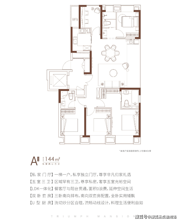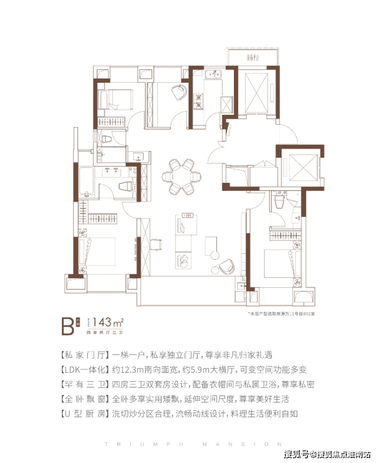 主力户型:主打129-181㎡的四室和五室改善型户型,采用一梯一户设计,得房率约76%-81%,层高3-3.3米