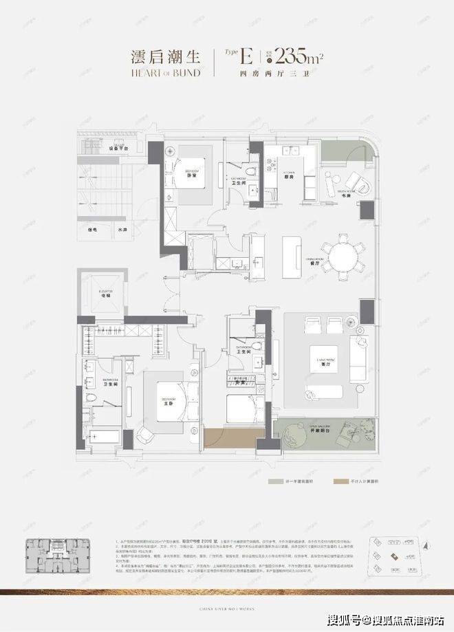 245-286㎡四至五房大平层:头排瞰江产品,IMAX级客厅,户户瞰江,部分户型享270°环幕视野;