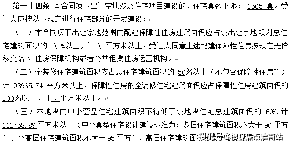 根据项目建设需求:地块规划住宅下限1565套,地块要求一半全装修,中小户型比例为60%以上,装修集采标准为2500元/平。