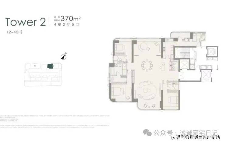 最后批次加推的是T2西边户,建面约370㎡大平层&730㎡顶复,项目从视野、户型设计和装标各个维度,都足以匹配外滩顶豪的站位。
