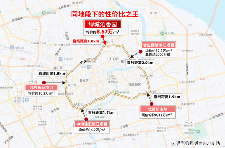 首先,项目距离内环直线约1.8km,而全市同样地段维度的新房,每一个都是千万以上的豪宅。