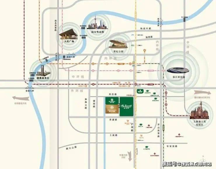 并且凭借区域内的中环线、S20、11号线等道路交通设施。把康桥和前滩、张江科学城、迪土尼、浦东国际空港、外高桥自由贸易区等五大引擎连成一条黄金轴线。