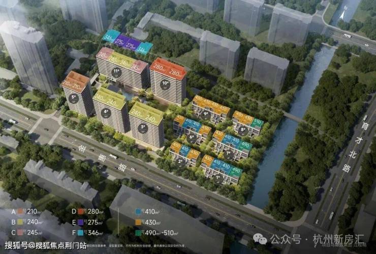 规划5栋12-16层高层与6栋4层排屋,共180户,呈现出稀缺的低密社区格局。高层建面约210-280㎡,均配置五房,顶跃户型建面约275-346㎡;排屋建面约410-510㎡,地上4层,地下层高约6.4米,无论空间尺度还是功能定位,均对标甚至超越奥体、钱江新城的一线高端产品。