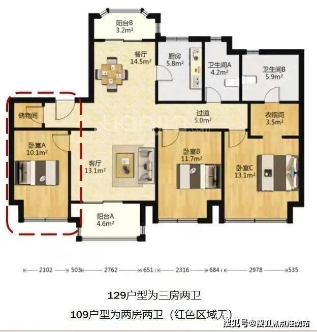 除了四开间朝南、全卧朝南之外,该户型还拥有诸多亮点: