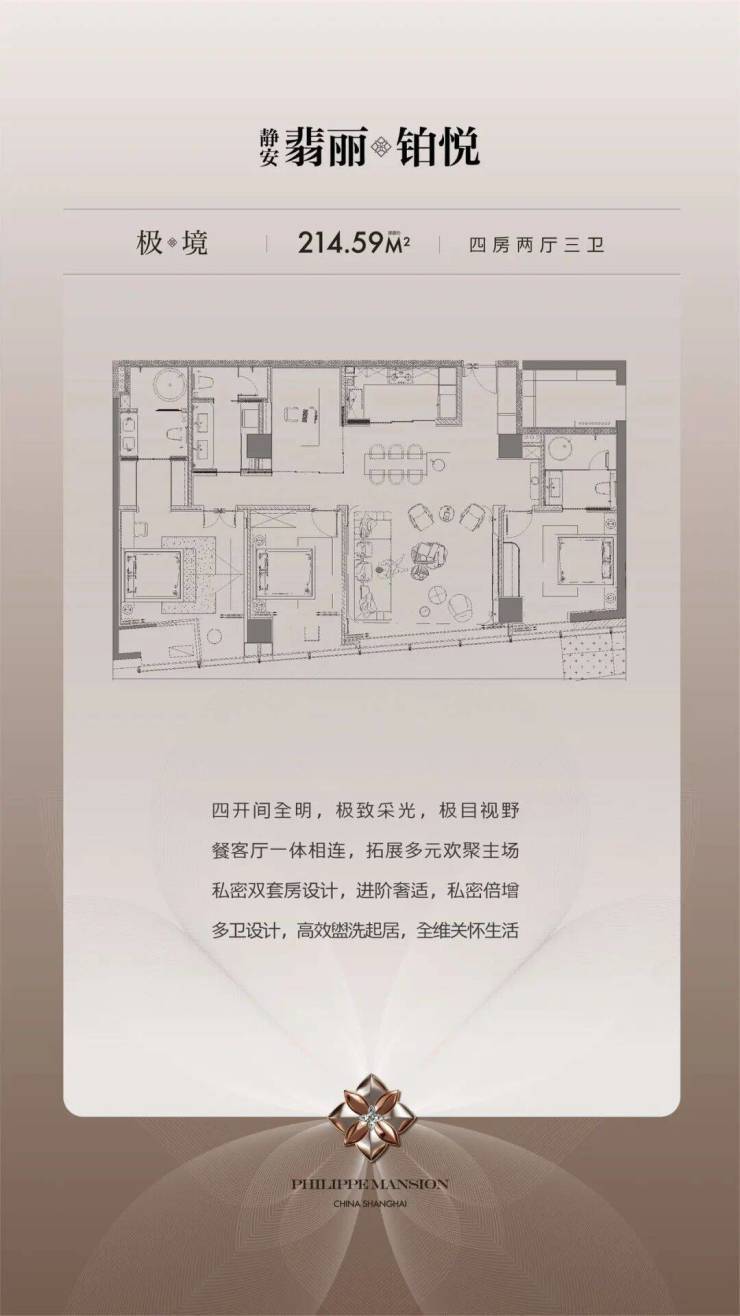 【极境】建筑面积约214.59㎡丨4房2厅3卫(双套房)