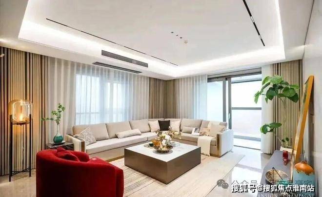 此户型在3#边套,也是样板间户型,正南向看老静安南京西路城市景观,东南向可以看到陆家嘴及苏州河景观,相当完美!主卧套房设计了双开间都朝南,尊崇感更强,双面通风客厅采光效果不错