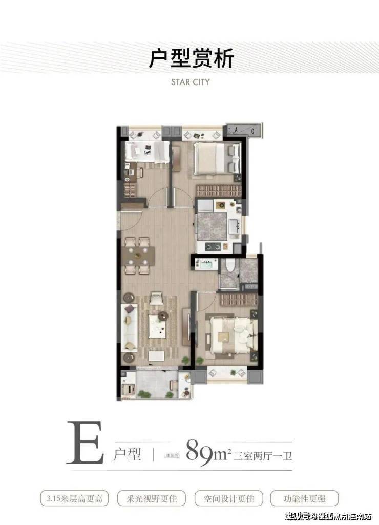 建面约88㎡3房:大虹桥范围不到90㎡的户型大部分都只做到2房,而虹桥灿耀星城该面积段实现3房功能性,让自住客户一步到位,也让该产品进入二手市场后具备降维打击的优势!