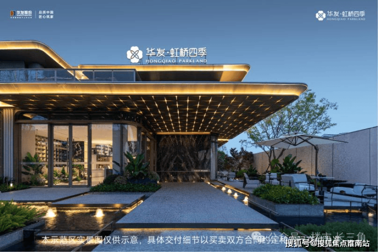 华发虹桥四季以酒店式标准打造高品质社区,园林设计强调现代与自然融合,营造出静谧优雅的居住松弛感氛围!