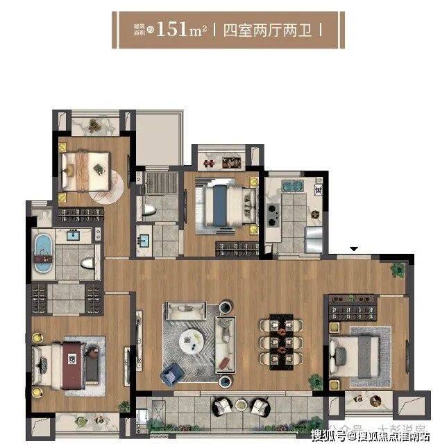 136平4房、151平