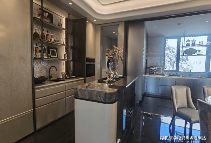 中西双厨+三阳台: 社交中岛与实用中厨分离 ,满足家庭聚会与日常烹饪的不同场景。三阳台设计最大程度引景入室,拓展活动空间。