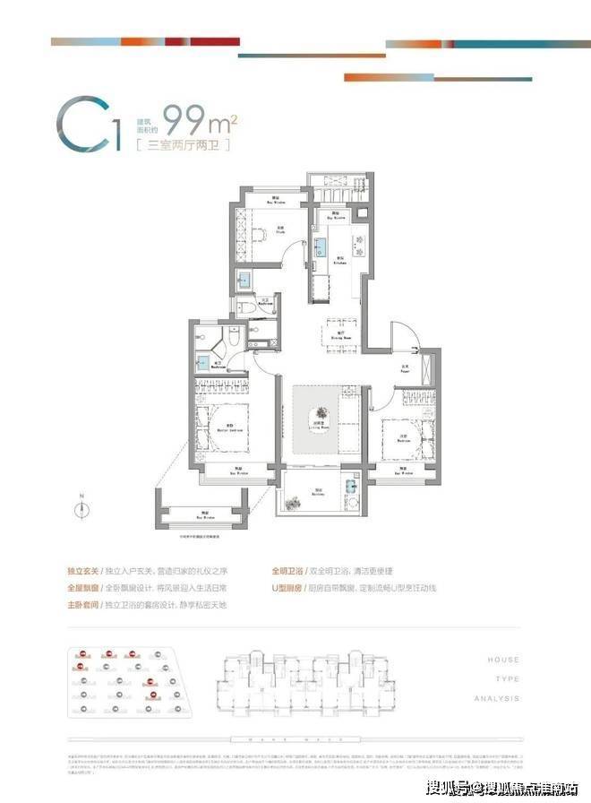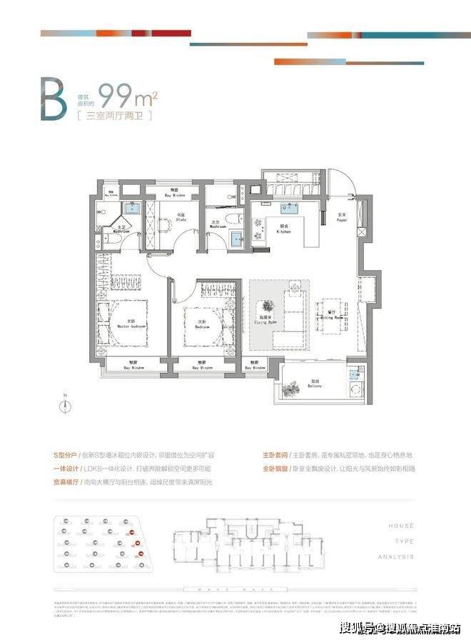 上海松江招商时代潮派售楼处电话☎:400-881-8994(预约看房热线)建面约99㎡三房:该户型是典型的飞机格局,很大程度上提高了使用率