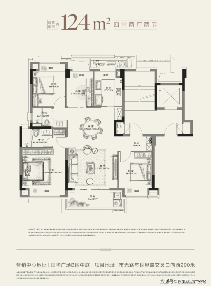 建面约124㎡户型:约1,000–1,250万元/套