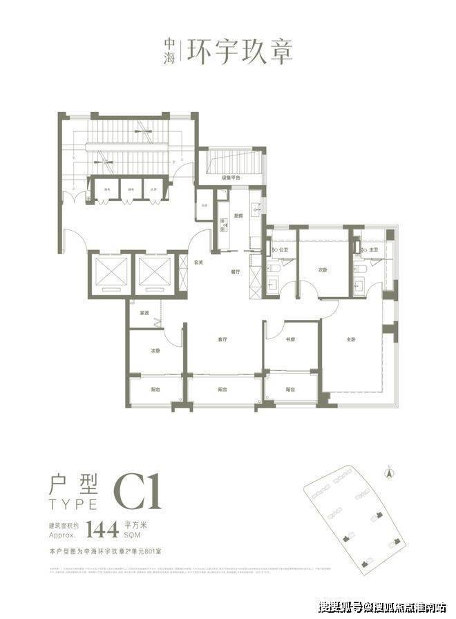 中海环宇玖章售楼处电话:400-8818-994(官方优先预约热线)南向面宽近14m,四开间朝南,独立玄关及约7.4平全明独立电梯厅,实得率超98%(含电梯厅),三阳台,满飘窗,设备平台,主卧室270°套间设计。层高3.15米。✅中海环宇玖章售楼处电话:400-8818-994