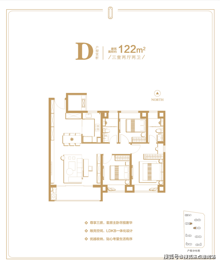 整个项目采用经典的中轴对称设计手法,使得楼栋分布较为均匀,形成有效的社区边界。