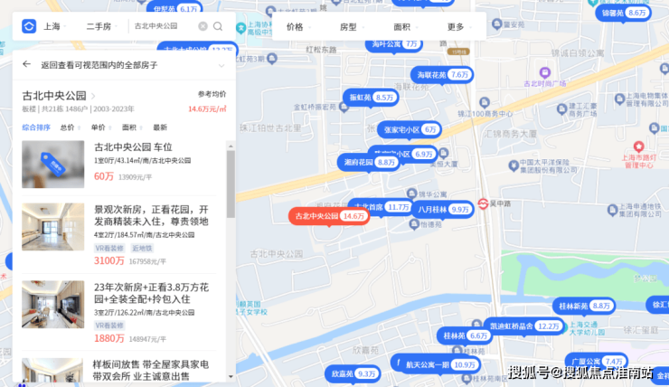 而古北99所在的古北核心区域,更是顶流豪宅的聚集区,与项目一路之隔的古北中央公园,二手挂牌均价普遍在14万元/平米!而板块内的明星项目古北壹号售价更已超25万元/平米!