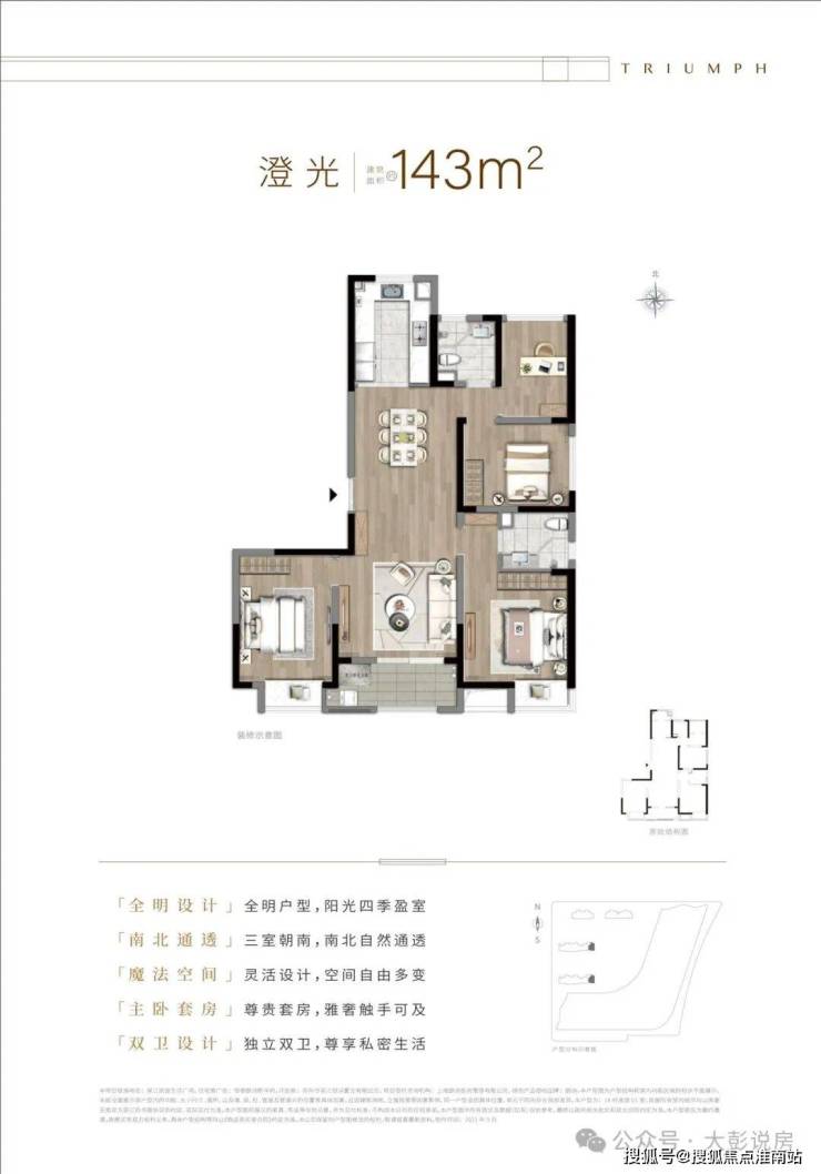 让空间适应家的成长。主卧套房和朝南次卧,满足大家庭的居住需求,北向多功能房,可根据家庭实际需求自由改造。