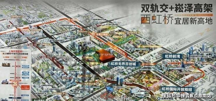 地铁:距离轨交示范区线(在建中)赵重公路站约500米,3站直达虹桥枢纽,可无缝换乘2号线、10号线抵达全市各大主要商圈。距离地铁17号线赵巷站5公里,6站直达虹桥枢纽。