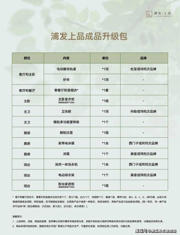 装修标准上,新风系统、中央空调、地暖,三大件各个户型全装全配。厨房臻选铂浪高或同等品牌抽拉式龙头及简约时尚的大单槽、瑞士百年大师级厨房品牌弗兰卡或同等品牌的油烟机、灶具,且配备蒸烤一体机。卫生间使用全套科勒或同等品牌的龙头/花洒/马桶/台盆,定制的镜柜