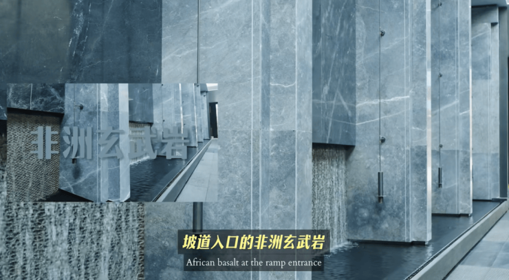 地库入口的巴西芬迪灰、坡道入口的非洲玄武岩、景墙的土耳其莫兰迪灰,以及入户门侧的透光云石。从材质到尺度,都让这个项目拥有了豪宅的重要感受——[被尊重]。