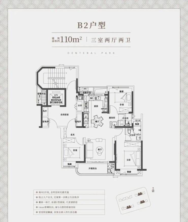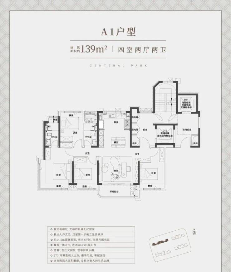 本次主推主力户型,涵盖三房 / 四房改善产品,亮点突出:高得房率 + 多赠送空间,零过道浪费类一梯一户 / 独立电梯厅,私密性与尊崇感兼备LDKB 一体化横厅设计,尺度感超越同级全系品牌精装,配置高端,居住体验一步到位