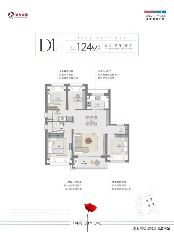 再来看一下建面约124㎡的经典款4房飞机户型。