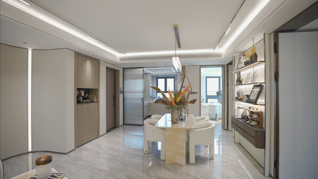 整个户型以客餐厅为中心点,自然延伸至各个功能间,室内没有多余的过道,几乎没有被浪费的过道面积。