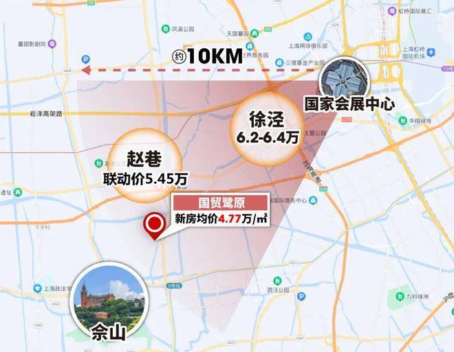 可惜的是,以国展为原点,10公里为半径,整个西虹桥一线辐射区域,徐泾房价超过6万/㎡,赵巷泗泾也已突破“5”字头,如果想买3房,预算没有500万以上几乎没有话语权!
