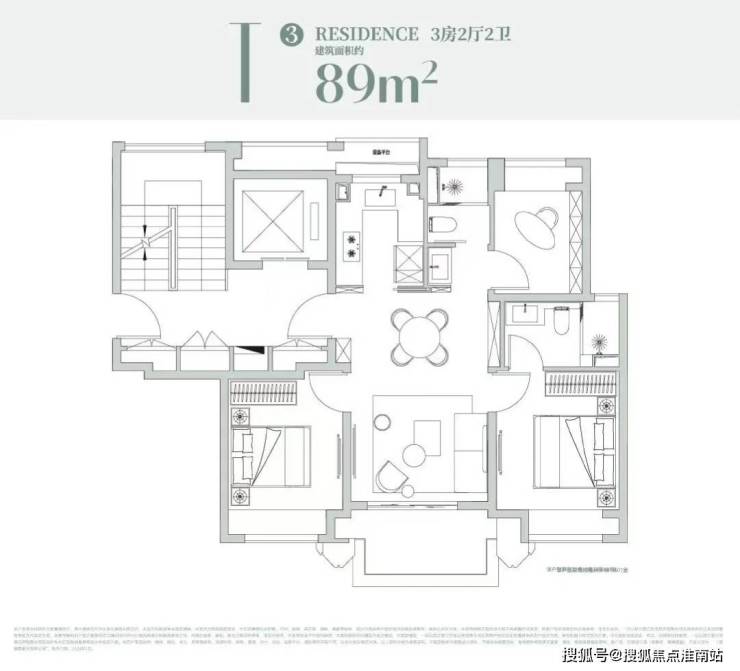约99㎡户型设计:经典飞机户型格局!独立观景阳台!