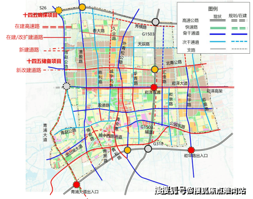 除了轨交,崧泽大道、北青公路、赵重公路等快速路组成的高速路网,也使得此处的自驾出行十分便利,尤其是崧泽高架建成后,连接虹桥枢纽的时间大大缩减。