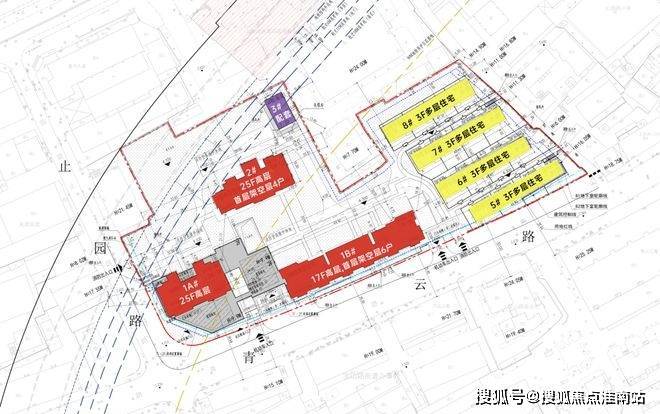 西侧为17-25层高层住宅,东侧为4栋3层联排。