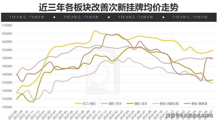 近三年的挂牌价格中,我们同样可以看到虹口瑞虹板块的突出,不仅在2022年稳定的市场行情下实现了攀升,更在近相对保守的行情下站稳了同类板块第一。