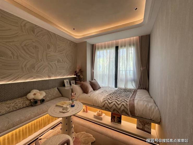 样板间3房做的是边套,今年非常流行的L型转角大飘窗也安排上了,采光视野更佳。