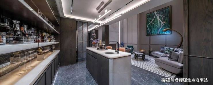 5. 整体采用了海派的装修风格,例如更耗时更费钱的带弧度的半圆形吊顶!以及当大部分项目还在用长虹玻璃时,招商臻境在厨房的三轨道移门处使用了水波纹玻璃,更具奢华感!这样的细节上次还是在看3000万级别的豪宅时才看到!