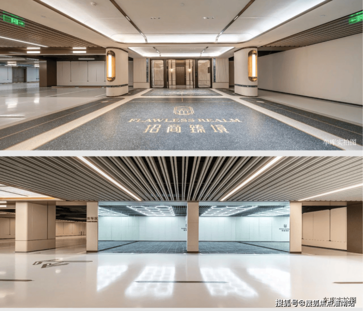 过去在豪宅项目才能看到的类似于“星空顶”地下车库坡道,招商臻境使用了看来更加高级的香槟金色吊顶,并加上穹顶闪耀的“追光”坡道!精装的地下大堂,配置了自然的采光井以及专属等候区,如同高级酒店的首层大堂,极尽礼宾仪式!精装地上大堂,地面的石材拼花造型,墙面的石材背景,将静奢海派的艺术展现的淋漓尽致!