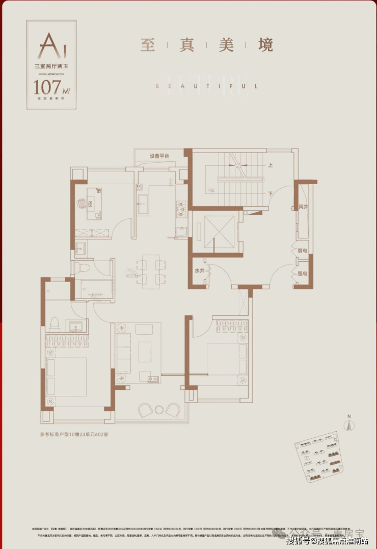 电视背景墙采用岩板交付,纹理自然,质感高级,彰显出主人独特的品味与格调。每一处装饰细节都经过精心考量,力求为业主打造一个既美观又实用的居住空间。还有建面约107㎡3房实景样板房同步公开,实现小面积里的“大满足”。整体面宽约9.8米,南北通透,所有卧室以及厨房都有飘窗设计,各个功能区域划分合理,动静分区明确,既保证了居住的舒适性,又满足了家庭成员不同的生活需求。