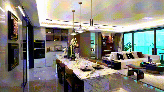 项目精装限价2.75万/平,细腻纹理的全屋墙纸、岩板电视背景墙等;还有德施曼智能门锁、德国奢侈卫浴品牌汉斯格雅花洒龙头+杜拉维特盥洗盆+恒洁智能马桶组合,厨房有弗兰卡大单槽、方太厨房三件套,甚至配备了洗碗机,海尔中央空调、并且还有博世的地暖……
