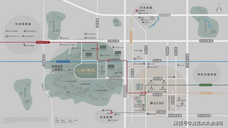 项目所处板块在地理位置上处于高新区中心位置,东有狮山核心CBD西有科技城,共享两个区域优质配套。以周边山水自然风光为基础,何山隧道为纽带,进一步连通项目与狮山片区。实现自然风光 — 项目 — 都市生活链条,构建多元生活场景。