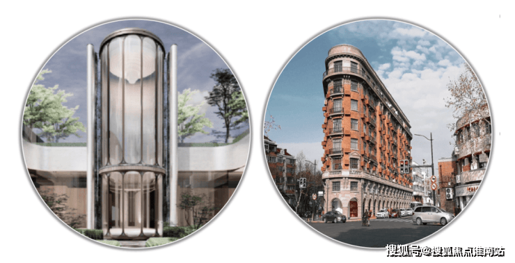 比如, 充满武康大楼元素风格的武康印象、参考徐汇公学建筑制式的会所入口、参考西岸美术馆设计的西岸艺廊……