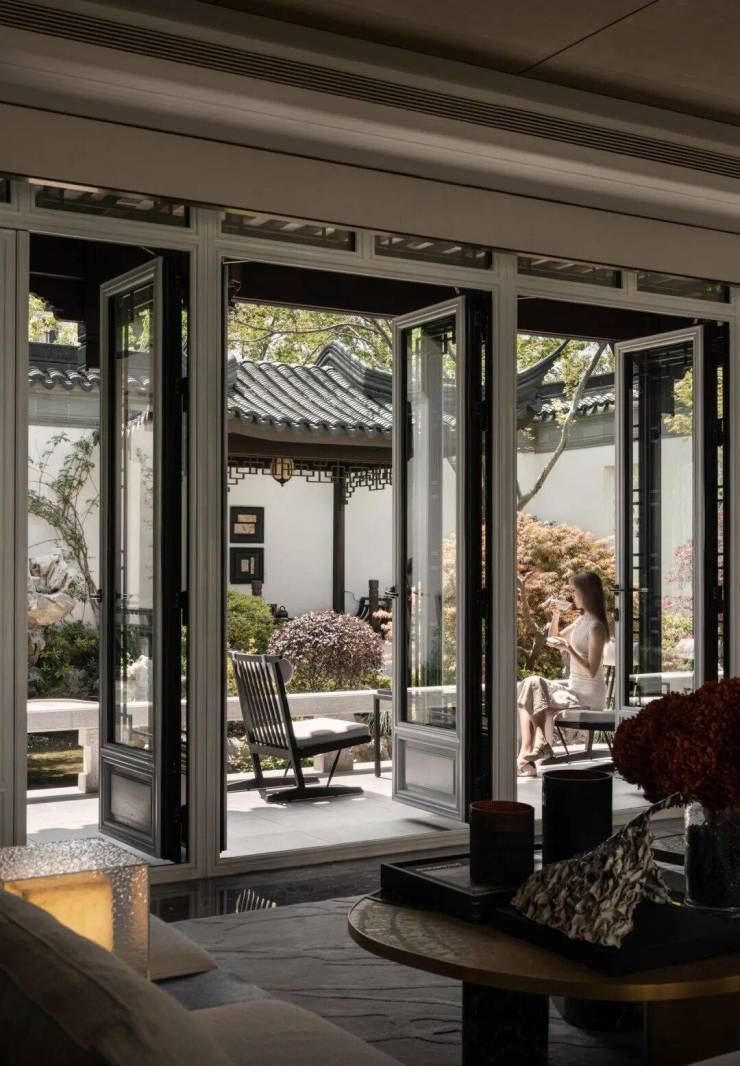 整个社区的师承苏州园林五进制序列,打造出“迎宾院-迎、主峰院-沁、水溪巷-隐、中轴央景-赏、组团园林-雅”的游园路线。
