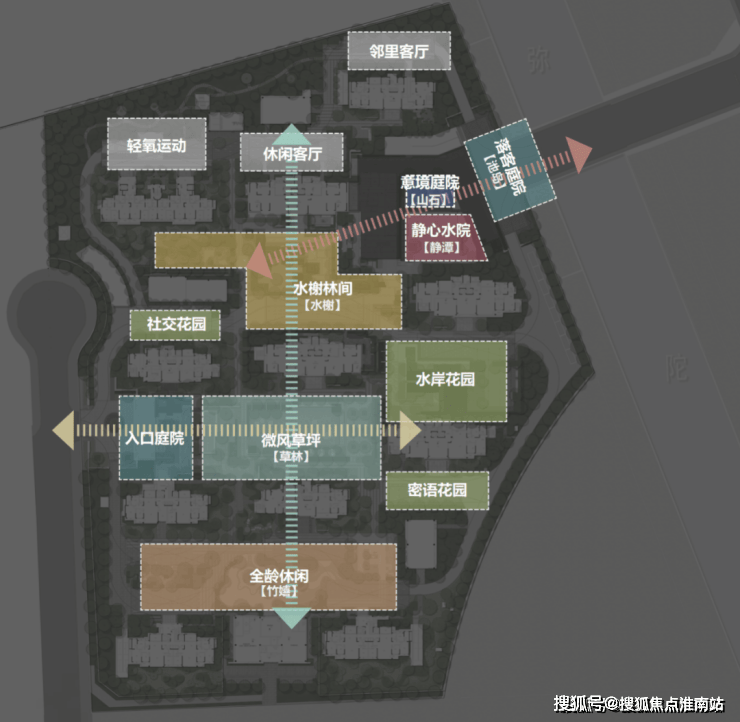 项目对标沧浪亭的整体设计,引入六大苏园核心场景,打造“三轴六境六园七会所”,通过“池岛-静潭-山石-水榭-草林-竹嬉”六种水岸度假生活美学,重塑当代游园体验,并且通过下沉会所、以及架空层设计,引入水景、绿植与灰空间,营造一种仿若置身一座“大园子”的体感,在建筑排布的设计主动减容,最终达成了19.8%的容积率,也就是在五分之一土地上造房,实现“低密”基因的强化,以及人均均好的景观实现。