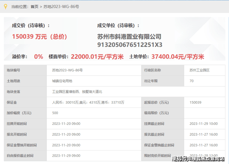 建屋·新棠玥,即斜港置业斜塘86号地块项目,即,苏地2023-WG-86号地块项目, 位于工业园区星塘街西、独墅湖大道北 ,是2023年11月29日,斜港置业以底价150039万元竞得, 成交楼面价22000元/平 。