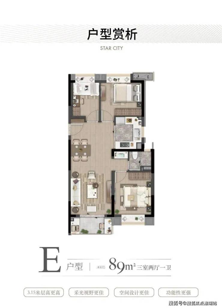 · 建面约88㎡3房:大虹桥范围不到90㎡的户型大部分都只做到2房,而虹桥灿耀星城该面积段实现3房功能性,让自住客户一步到位,也让该产品进入二手市场后具备降维打击的优势!