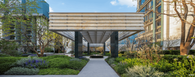 继续往里走,映入眼帘的是二期园林景观——绿野仙踪。它拥有 5重立体园林、3大组团、7大森境花园, 精心规划了盒中谧林、盒中丘谷、盒中花园、盒中森活等四大园林体系,仿佛一个 蓝绿臻宝盒。