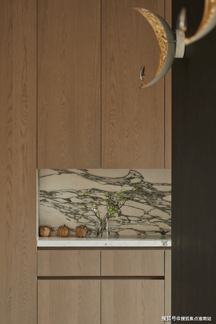 地面延续酒店式落客区海棠纹拼花镶钻,铁打纹工艺,其间还有老石板,青石板,中国黑老石皮,柏坡黄的石皮等原石原面铺装,老石皮从大料里取出,数量少而贵,由此也可看出保利·永兴里在别墅打造上是真舍得,也是真高级。