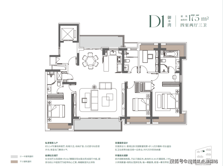 如果有进阶改善置业需求的客户,可以选择建面约140/175㎡4房2厅3卫!