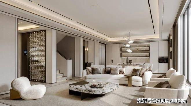 约6米挑高地下空间,南入户地下面积约220-270平米左右,北入户地下面积略小一些,可以根据主人喜好定制成如健身房、酒窖、影音室、台球房等任意空间。