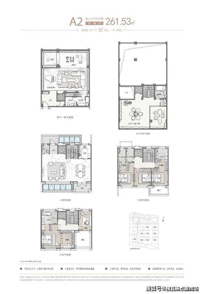 项目主推建面约262-305㎡联排别墅,分为南北入户,均为地上三层,地下两层设计,满足业主们“有天有地有花园”的别墅居住体验!