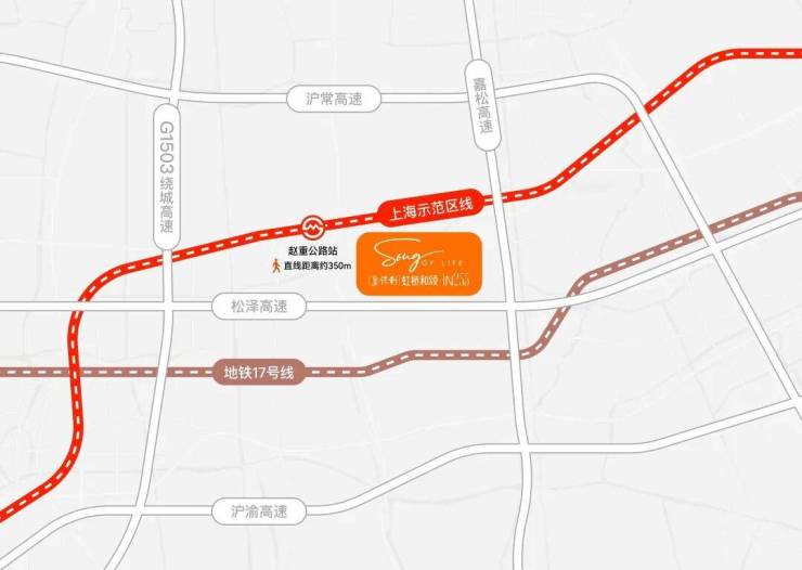 双轨交加持,通勤便利:示范区线500米,未来3站达虹桥,通勤效率质变