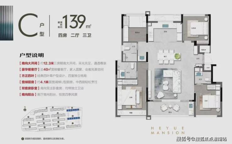 约114㎡户型还是标准的四叶草户型,4个房间互不干扰。南向还拥有约6.5米的超长阳台,可同时兼顾生活和休闲功能。